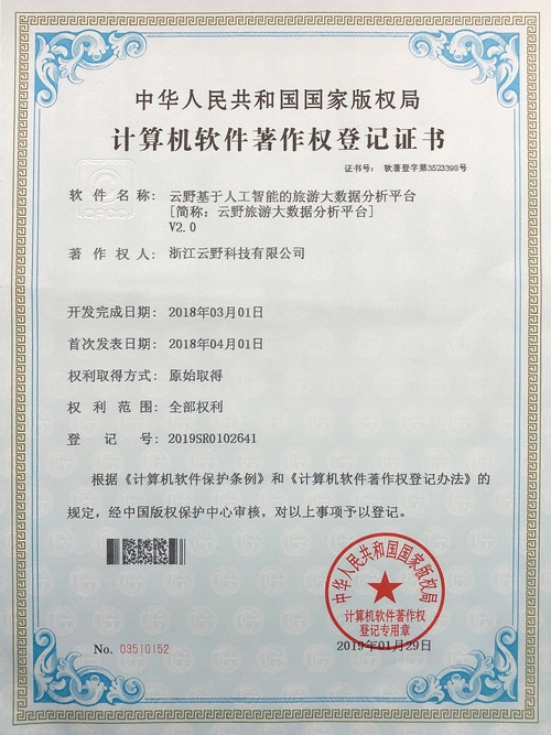 浙江云野科技有限公司 成立于2016年,總部位于杭州,在貴州、廣州、拉薩設(shè)有服務(wù)中心,是一家專注于“數(shù)智文旅建設(shè)、景區(qū)商戶數(shù)字化支付服務(wù)場(chǎng)景打造、文旅輕業(yè)態(tài)投資”業(yè)務(wù)于一體的文旅產(chǎn)業(yè)鏈國(guó)家高新技術(shù)企業(yè),公司注重文旅產(chǎn)業(yè)應(yīng)用創(chuàng)新,運(yùn)用AI、云計(jì)算、物聯(lián)網(wǎng)、VR/AR、區(qū)塊鏈等技術(shù),通過(guò)科技手段賦能文旅業(yè),具有豐富的行業(yè)服務(wù)經(jīng)驗(yàn),目前已擁有自主研發(fā)的三十多項(xiàng)核心軟件產(chǎn)品,形成了較為完整的行業(yè)應(yīng)用產(chǎn)品體系。