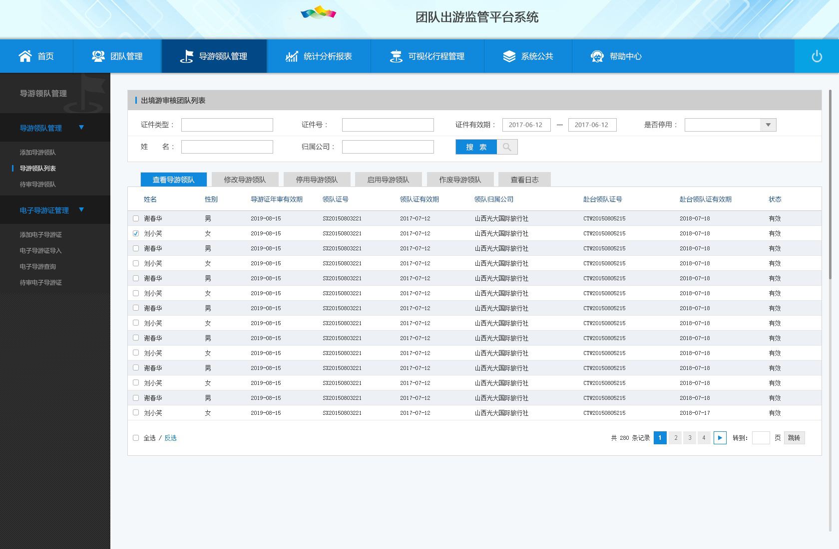 2)  導(dǎo)游/領(lǐng)隊(duì)管理:導(dǎo)游領(lǐng)隊(duì)管理、電子導(dǎo)游證管理。