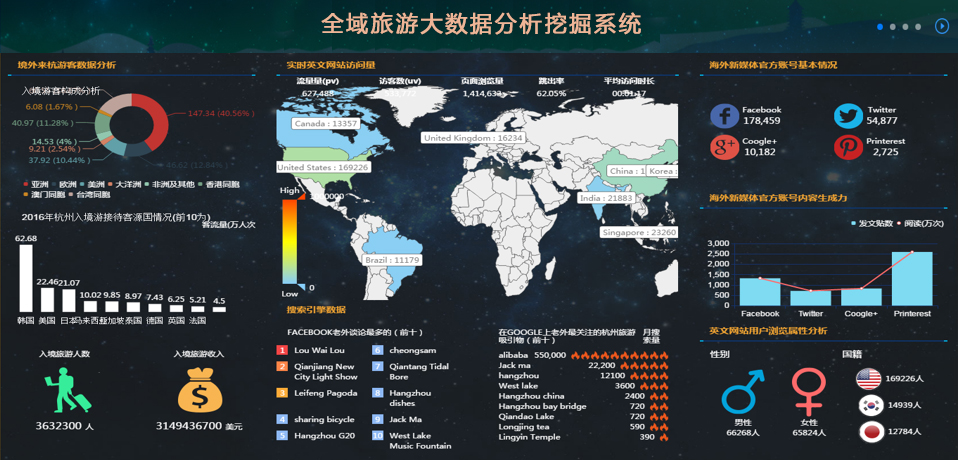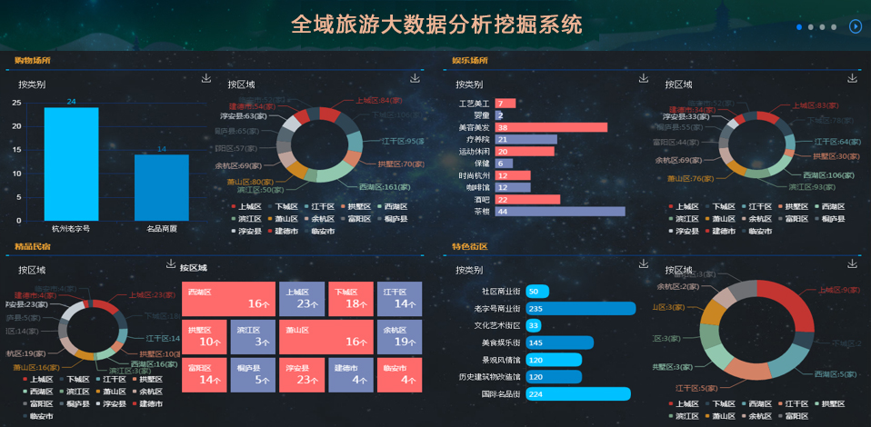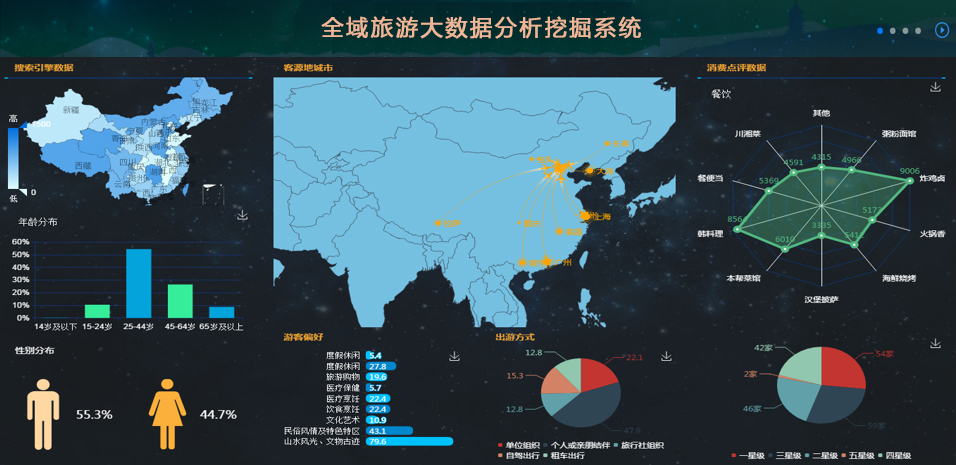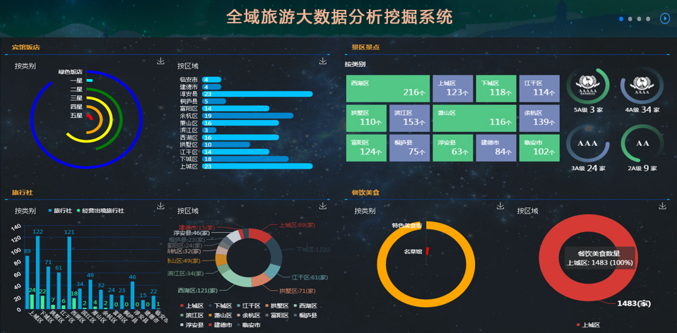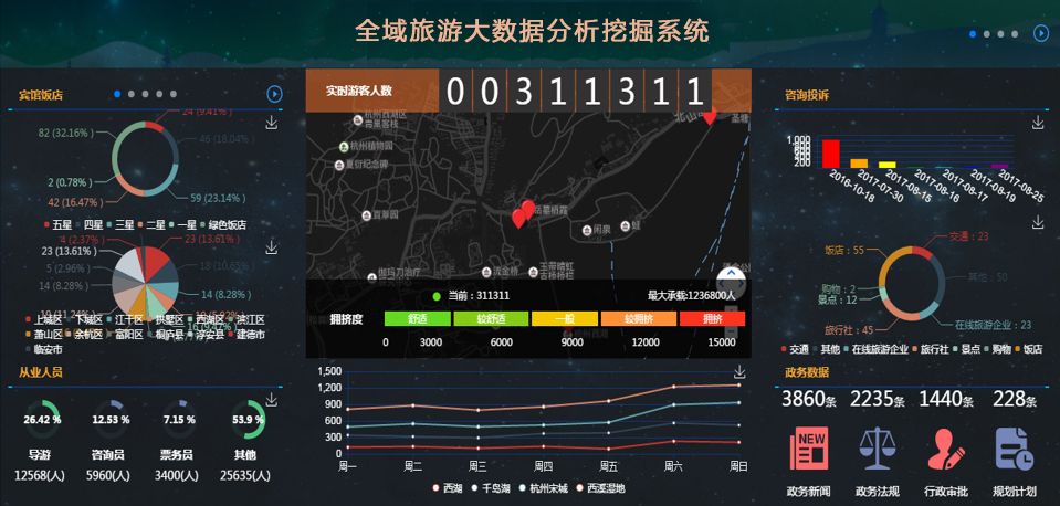 旅游產(chǎn)業(yè)分析需對吃住行游購娛六類旅游要素的數(shù)據(jù)進行分析,并通過圖形圖表的方式進行展示。