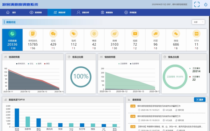 采集主流互聯(lián)網(wǎng)渠道上關(guān)于旅游景區(qū)、住宿、餐飲等方面的評價數(shù)據(jù)。得出游客對景區(qū)、酒店、餐飲等主要旅游要素的正面、負(fù)面、中性評價。識別各景區(qū)、酒店、餐飲網(wǎng)絡(luò)形象變化、市場優(yōu)勢和短板所在。