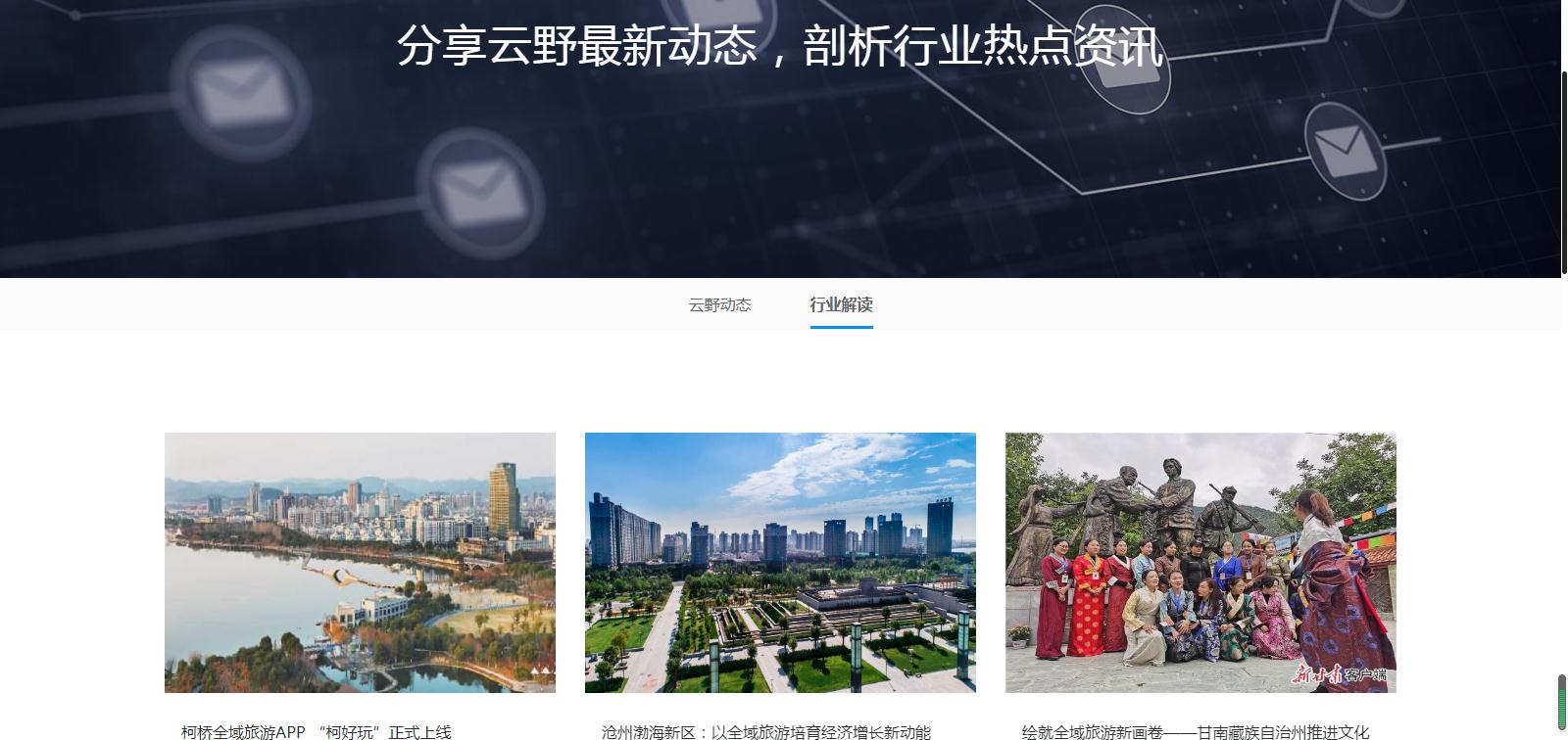 浙江云野科技有限公司是一家專注于智慧文旅建設(shè)、全域旅游運(yùn)營及旅游大數(shù)據(jù)研究的高科技企業(yè),公司注重“智慧文旅”應(yīng)用創(chuàng)新,運(yùn)用云計(jì)算、物聯(lián)網(wǎng)、VR/AR、AI、區(qū)塊鏈等技術(shù),為景區(qū)、旅游目的地等提供集“智慧旅游規(guī)劃 定制技術(shù)開發(fā) 旅游品牌策劃推廣 運(yùn)營維護(hù)”等一系列有效的解決方案。